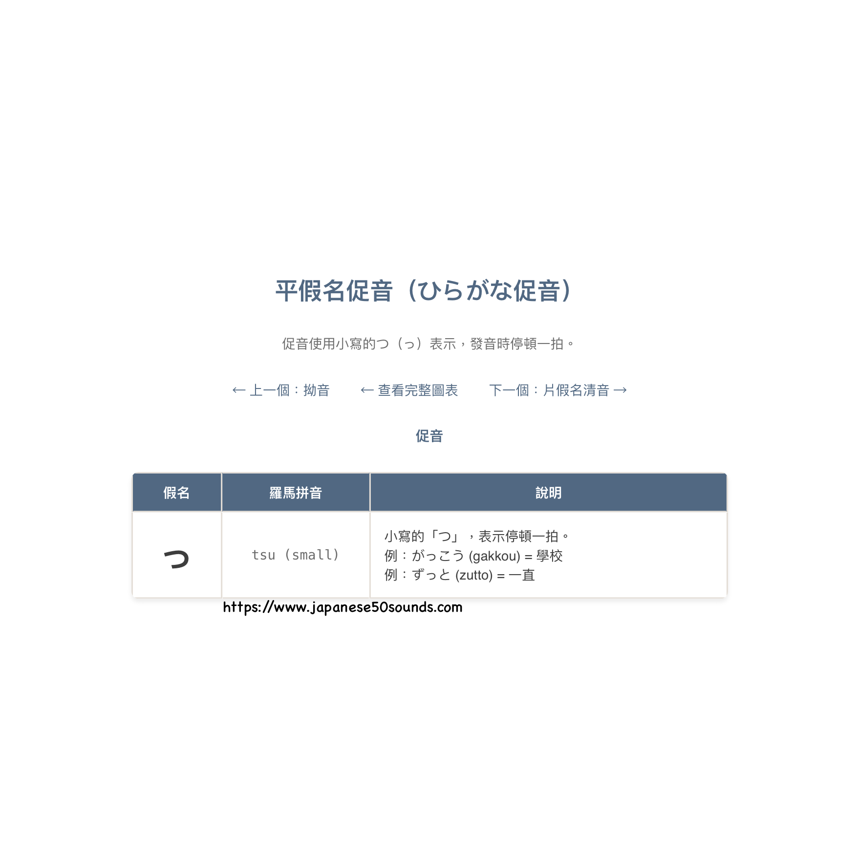 促音(っ)是小寫的「つ」,用於表示停頓。實際不發音,而是在發音時,停頓一拍。