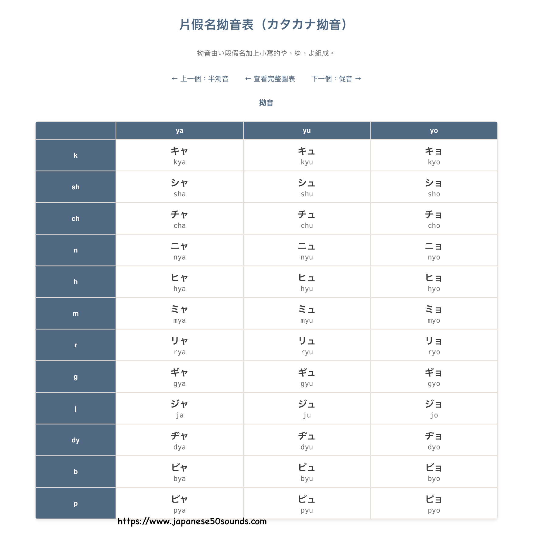 片假名拗音表(カタカナ拗音)